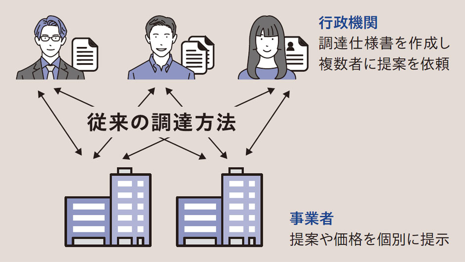 従来の行政のIT調達には、いくつかの課題がありました。調達の都度、仕様書を作成し、事業者が個別に提案を行うため、双方に大きな負担がかかり、調達期間も長期化しがちだったのです。また、手続きの煩雑さから参入障壁が高く、特に中小企業やスタートアップが参入しにくいという側面もありました。
